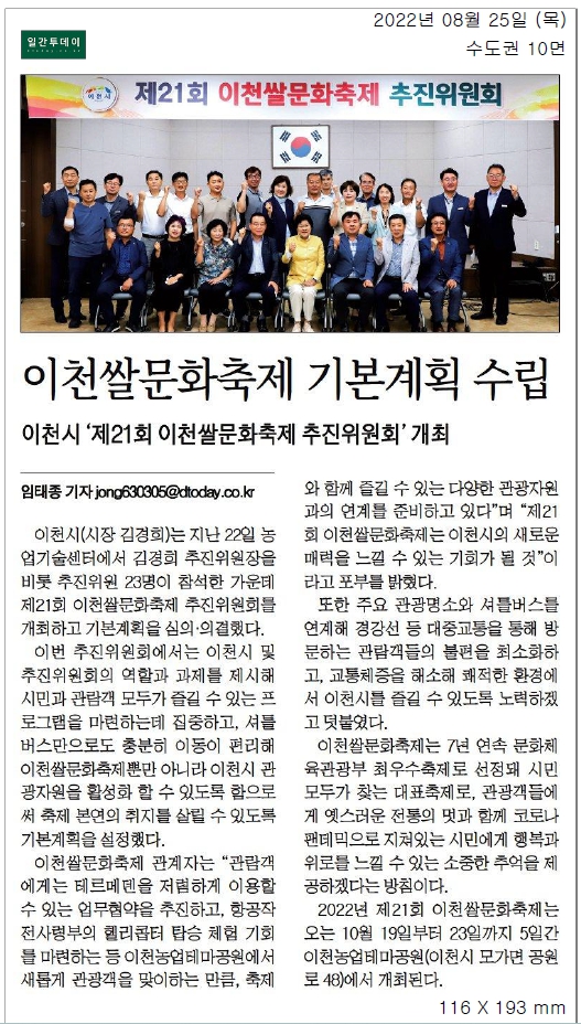 기사 제목 : 이천쌀문화축제 기본계획 수립