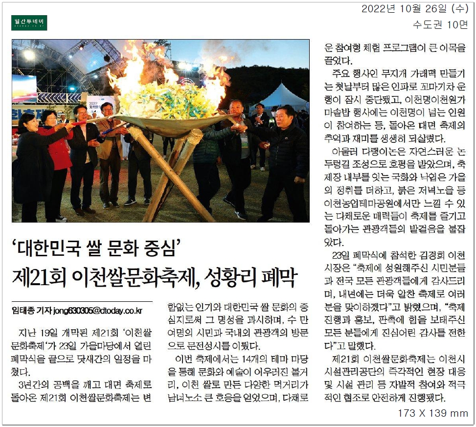 (일간투데이) '대한민국 쌀 문화 중심' 제21회 이천쌀문화축제, 성황리 폐막